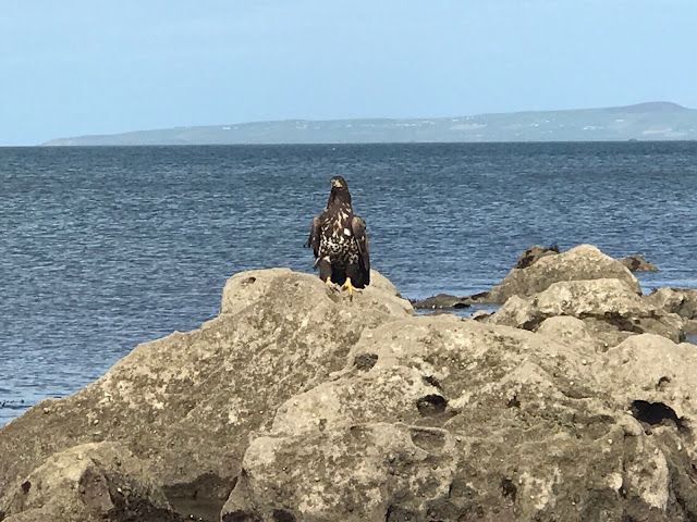 After no sightings since April, a young White-tailed Eagle has re-appeared in Kerry at several sites over the past couple of weeks. Christened 'Eddie', he was at Rossbeigh, then Inch and yesterday, in Tralee Bay.